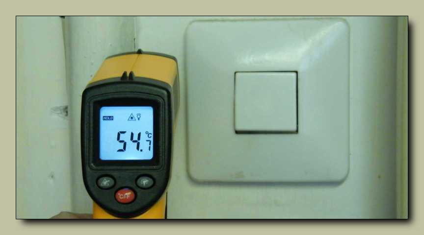 Íme az eredmény. A korábbi állapotokkal ellentétben, a kapcsoló semennyivel sem melegebb a környezeténél, valamint - a takarításnak köszönhetően - a fehér színe is visszatért. Épp mint ahogy a szerző is visszatér a mindennapi rutinhoz. |