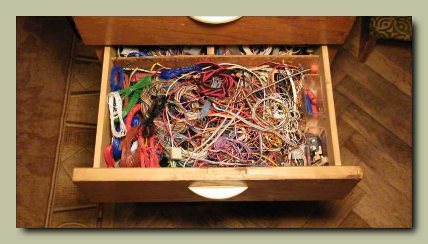 Kisvártatva meglepve vettem tudomásul az asztal drótos fiókjában tapasztalt rendet. A rend persze egy kissé túlzás, de attól azért még jóleső érzéssel töltött el az apró elmaradások a lakásban kettő project keretében elért azon apró részeredmény, miszerint immáron minden különösebb erőlködés, akarom mondani végül kilógó ezernyi színes drót látványa nélkül sikerült visszatolnom az asztalba a fiókot. |
