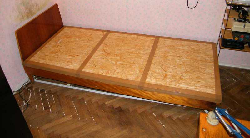 A fugázás megnyitásaképp abba az apró projectbe álltam bele, melynek konkrét célja, hogy végre húzhatóvá varázsoljam a rekamiét. Húzni persze eddig is lehetett, csak közben rútul felszántották a parkettát az ágy aljából kiálló szögfejek. |