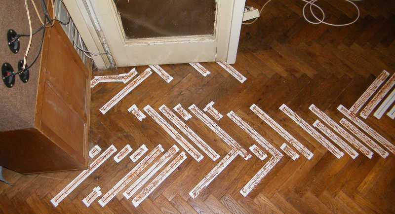 problémát úgy kerültem meg, hogy a parkettaelemek közti réseket körbetapétáztam