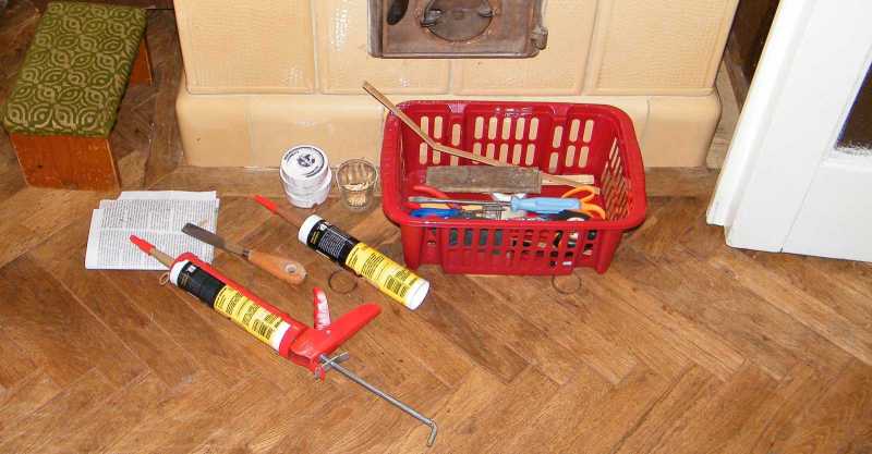 Már csak azért is, mert ugye minden igyekezetem ellenére csak kimaradtak a fene nagy fugázásból olyan apró területdarabkák, mint például az előszoba és a hall szőnyege közötti rész. Szerencsére még nem késtem el, hiszen ami csak kell, minden itt van hozzá kézközelben. |