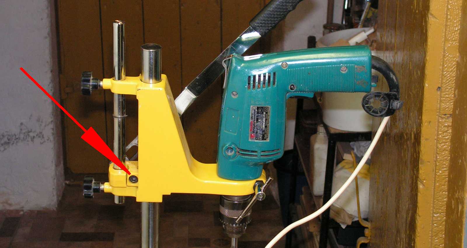 Bár a betervezett két nagyfejű anya elkészült, csak ha már egyszer itt vagyok alapon, ráadásul épp a fúrógép állványát csesztetem, akkor nehogy már kimaradjon a projectből az állvány másik neuralgikus pontja. Mint azt már korábban említettem volt, ez az állvány magasságának beállítása, amit a képen piros nyíllal jelölt csavar meglazítása után lehet megtenni. Csak ugye mivel lazítsam meg azt a csavart? |