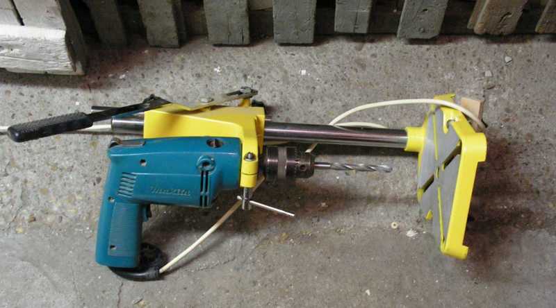 Az állványba fogott fúrógép azért is előnyösebb a magában álló, természetesen befogott fúrószárral együtt a földön óvatlanul elhelyezett változatnál, ugyanis ebbe a kombinációba egy szokásosan hatalmasat rúgva már sokkal kisebb rá az esély, hogy a csigafúrót egy sebésznek kelljen a bokámból kioperálnia. |