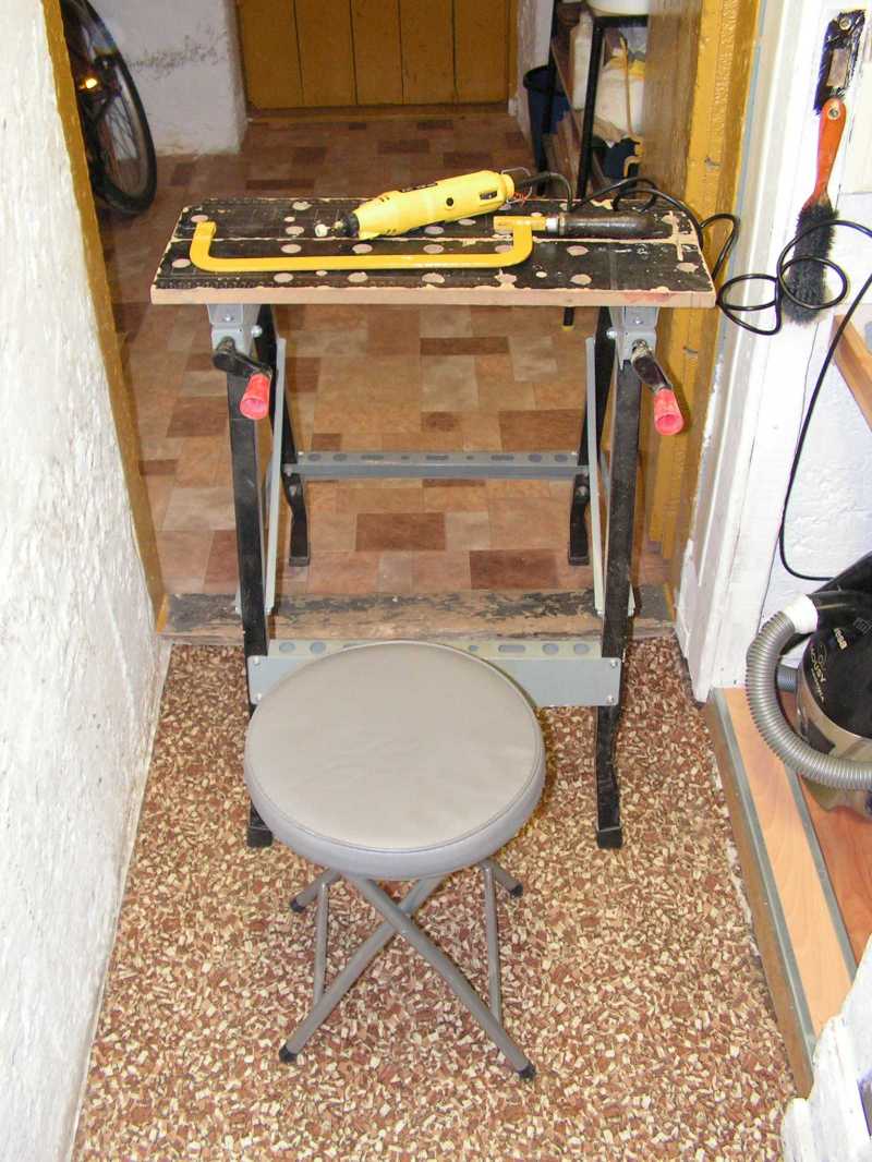 szék, fűrész, masina, munkakedv.