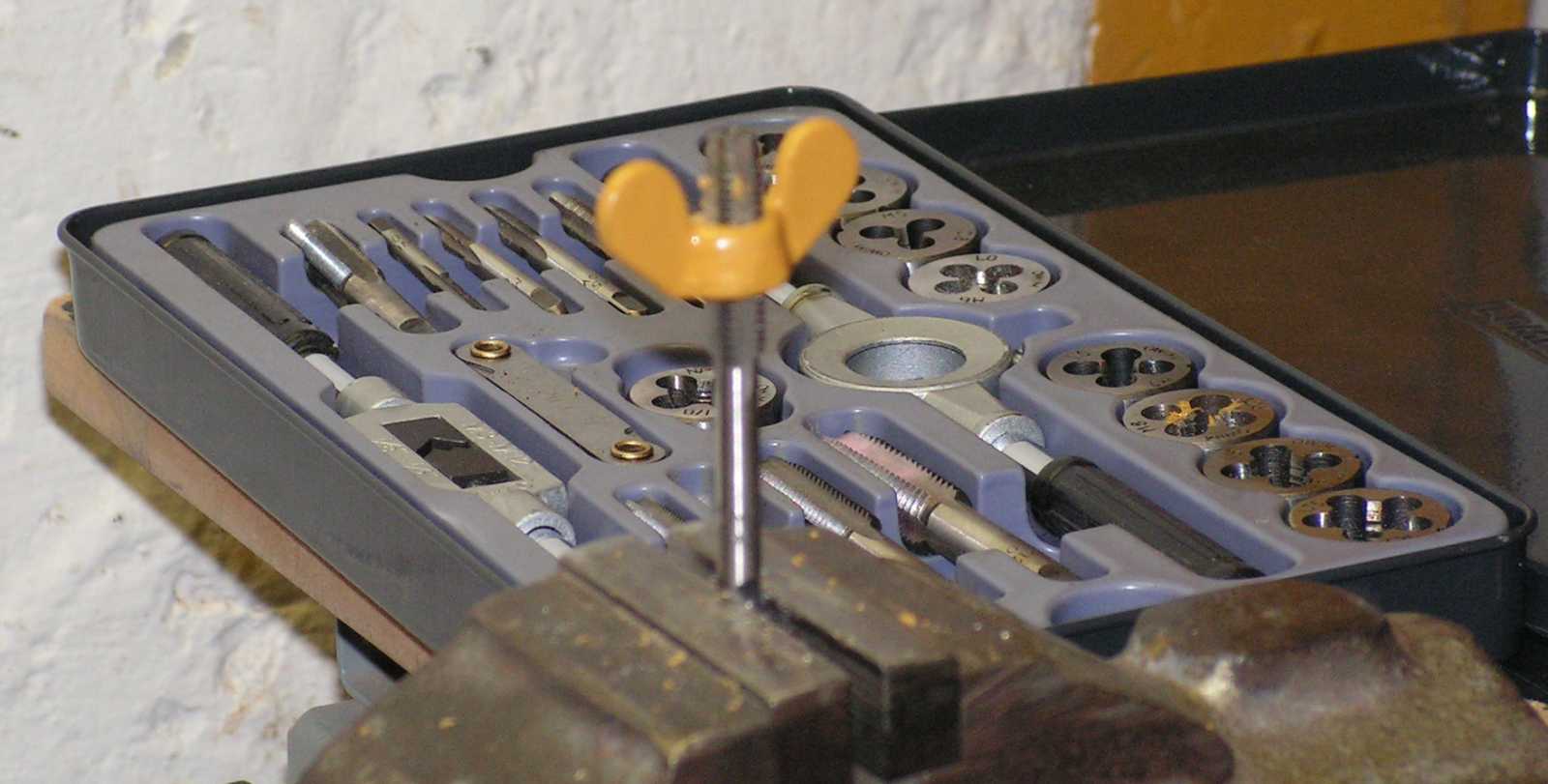 Majd újrafúrtam a menetet a szárnyas anyában is, mert ugye abba is belefolyt a festék. Mindeközben a menetelő készlet olyan szinten vágyik a szereplésre, hogy nyomhattam a gépen bármit, mindenképp rá irányult a fókusz. |