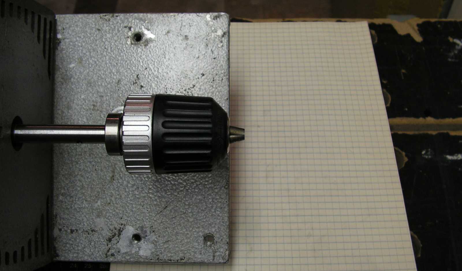 Nos azért, mert azt találtam ki, hogy a másik oldaláról is megtámasztom a tengelyt, mégpedig olymódon, hogy ráfogatom a tokmányt, melynek popsiját a jelen összeállítás szerint a bezsírozott állócsúcs támasztja meg. Bár először így, vagyis késtámasz nélkül próbálkoztam, azonban kisvártatva rájöttem, hogy amit szeretnék, az sem így, sem úgy, sem semmiféle más módon nem fog összejönni. |