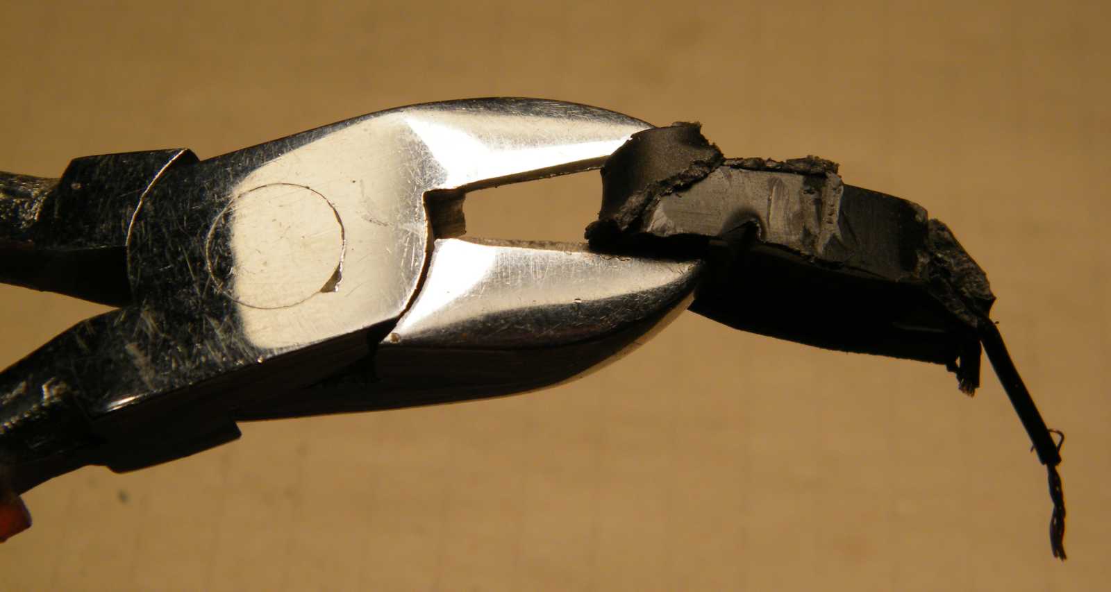 Mivel a kicsibe nem fért bele, a nagyobbik csípőfogóval kezdtem el harapdálni.