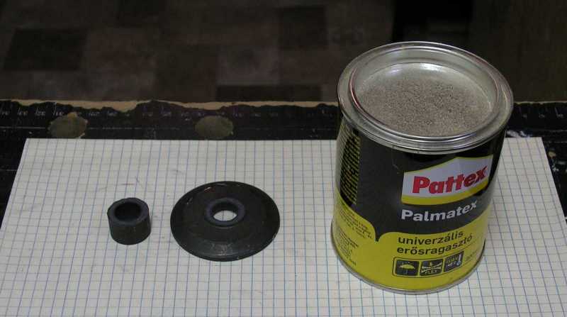 Természetesen tudom, hogy a Pálmatex még véletlenül sem erre való, de attól még meg lehet vele ragasztani a vasat is, hiszen csak addig kell tartania, míg fel nem teszem a gépre a követ. Már úgy értem azért, nehogy ütős irányba forduljon össze a kettétört vasdarab. |