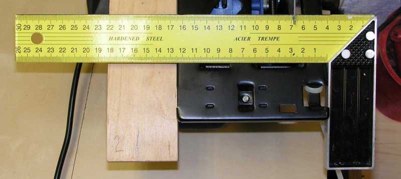 Ez így első ránézésre (és bizony még többedikre is) egy annyira lehetetlen összeállítás, hogy inkább elárulom, miszerint épp méretet veszek a körfűrészről. Már úgy értem az a mérete érdekel, hogy pontosan milyen távolságra is van a gép szélétől a körfűrész tárcsája. |