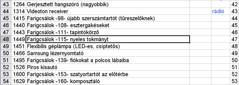 Bár az előbb azt mondtam, hogy nem állok neki az elmaradt építési projekteket felsorolni, de csak úgy mellékesen ízelítőt ad belőlük ez a táblázat, amiből persze örömmel ütöttem ki a nyeles tokmány elkészítését jelentő sort. |