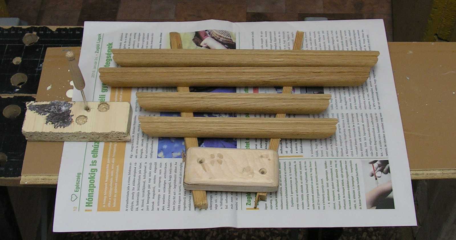 Mire fel már hajigáltam is egymásra a megfelelő méretű fadarabokat. Az persze igaz, hogy ezek tényleg csak úgy egyszerűen ide lettek téve, szóval nem tartja őket össze semmi (legfeljebb csak a saját súlyuk), de egy ilyen apró munkához még ez a meglehetősen hevenyészett összeállítású késtámasz is bőven megteszi. Ez akár egy baleseti jegyzőkönyv kezdő mondata is lehetett volna, de szerencsémre nem lett. |