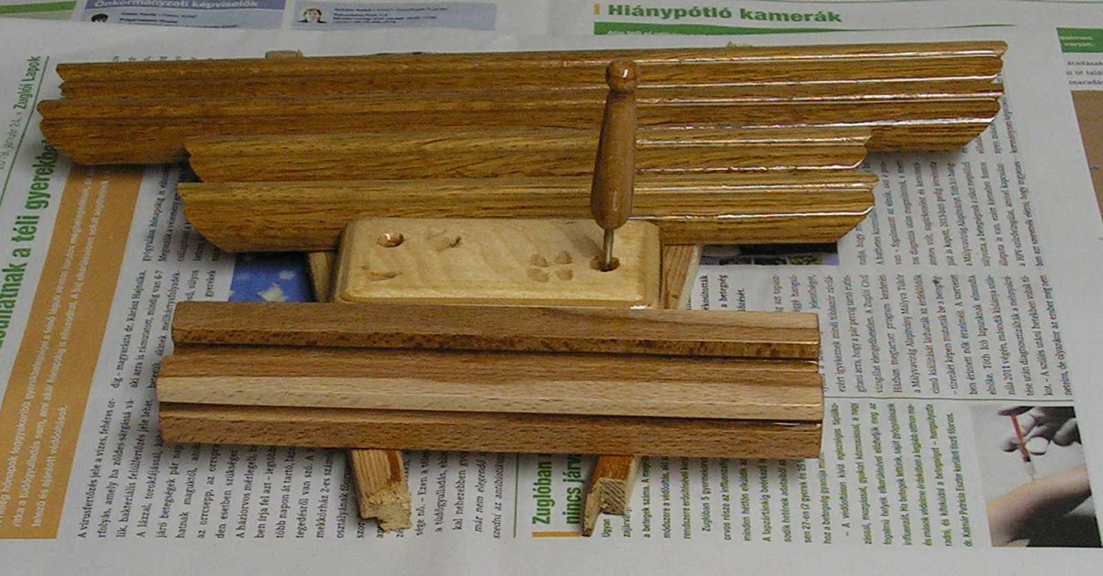 Ez az ajtóra szerelt támaszték, mint egy újabb lakkozandó fadarab került elő.