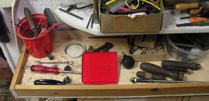 Íme a pincében másodikként létrejött szerszámos fiók. (az első a múltkor kerekeket kapott szerszámos láda volt) Ezt azért most húztam elő, mert egyrészt nem nagyon tudok mást csinálni az éppen száradó festett dolgok miatt, másrészt rendetlenség van benne, míg harmadsorban nem tudom pontosan, hogy mi. Már úgy értem, hogy a fiók aljáig és hátuljáig már évek óta nem volt le, illetve betúrva. Ez olyankor tud nagyon fájó lenni, mikor nem találom az éppen végzett feladathoz a célszerszámot. Pláne rosszul esik, ha nem is tudok róla, hogy létezik (mármint van nekem olyan), csak mikor hónapok múlva teljesen véletlenül meglátom. |