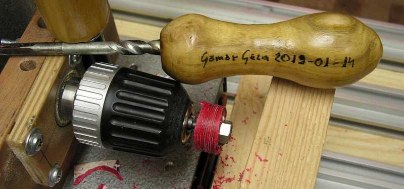 Majd az eszterga tengelyének megakasztására szolgáló fanyelű fémpálcikával foglaltattam el az őt méltón megillető helyet. Mikor ezzel is megvoltam, alaposan berúgtam. Esetemben persze nem alkoholizálásról volt szó. |