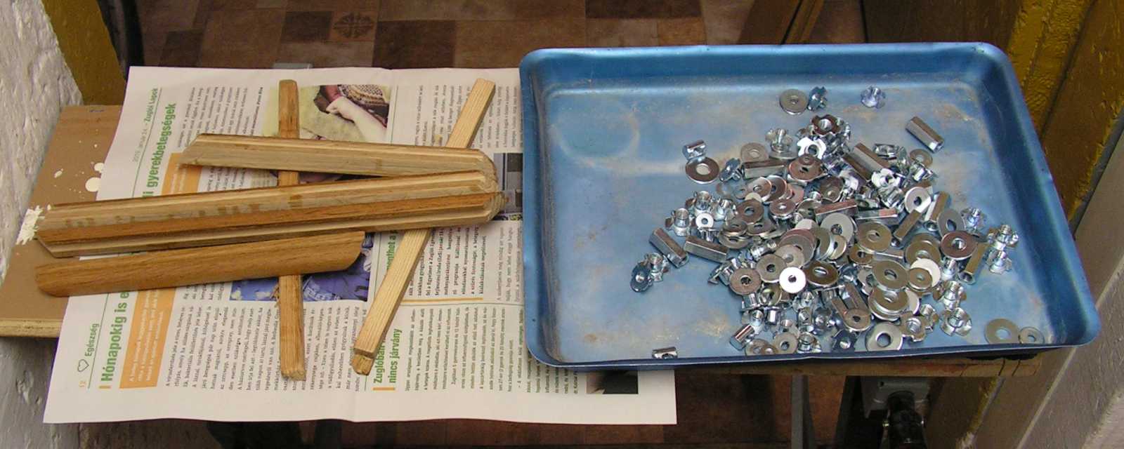 Jelen pillanatban azért, mert a csavarboltban vett anyákra és alátétekre voltam oly bátor rámondani, hogy jöhetnek egybecsomagolva, ugyanis alaptulajdonságom, hogy imádok fényes dolgokat válogatni. Mivel csak fakötésű alátétből vettem vagy ötfélét, ahányszor csak ki-be léptem a dobozukért, annyiszor mozdult meg alattam, de ami nálamnál is fontosabb, az eszterga ágya alatt a padló. |