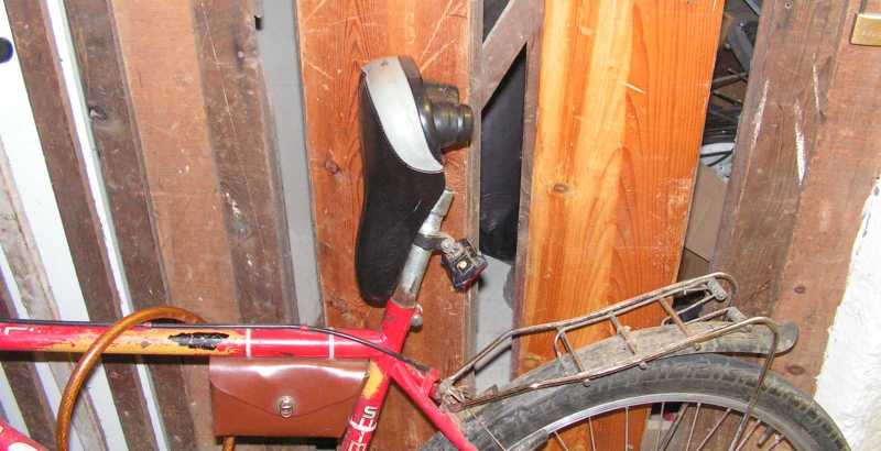 Hogy mi van? Kérdeztem rá a szokatlan látványra. No nem arról van szó, hogy alulról nézem a bicaj ülését, hanem arról, hogy a 8-as vasrúdból görbített alkatrész mégis hogy a csudába volt képes a helyéről ennyire elvándorolni. Mert ugye annak nem a múltkor beépített gumituskó alatt lenne a helye, hanem a felette látható szájformájú mélyedésben. |