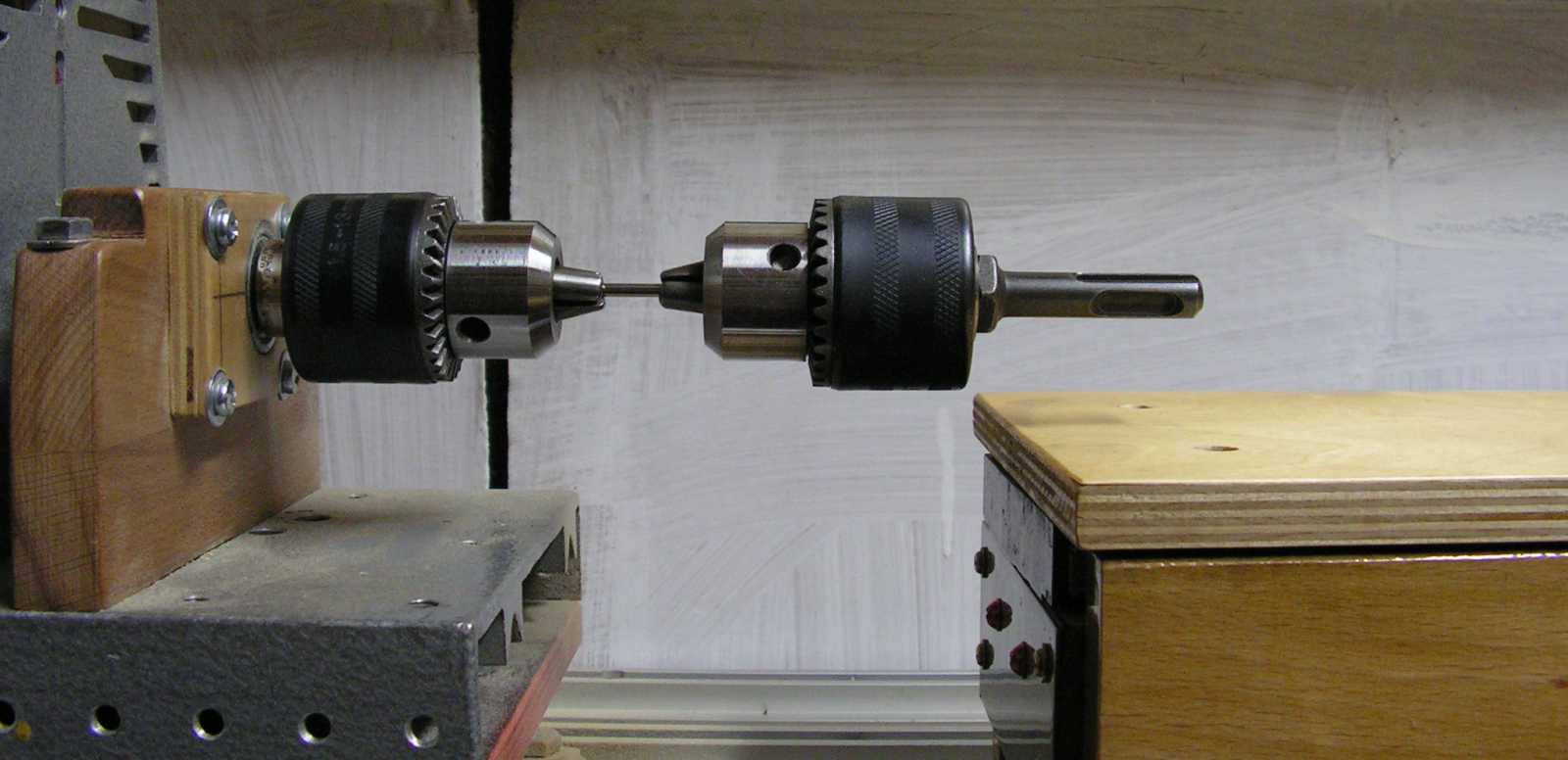 Ennek az összeállításnak ugyan semmi értelme sem volt (hiszen a jobb oldali tokmány nem képes forogni), de valamiért nem tudtam kihagyni, hogy a két tokmányt össze ne nézzem. Elmondjam, hogy ez az állócsúcs mégis mitől lett univerzális? Nos azért, mert egy tokmányba azt fogok be, amit csak akarok! |