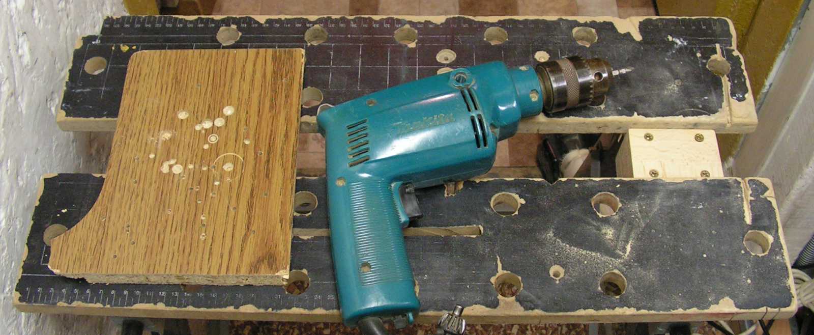 10-es fúrószárral fúrva (a negyedik lyuk amolyan próbából egy 9-es), három