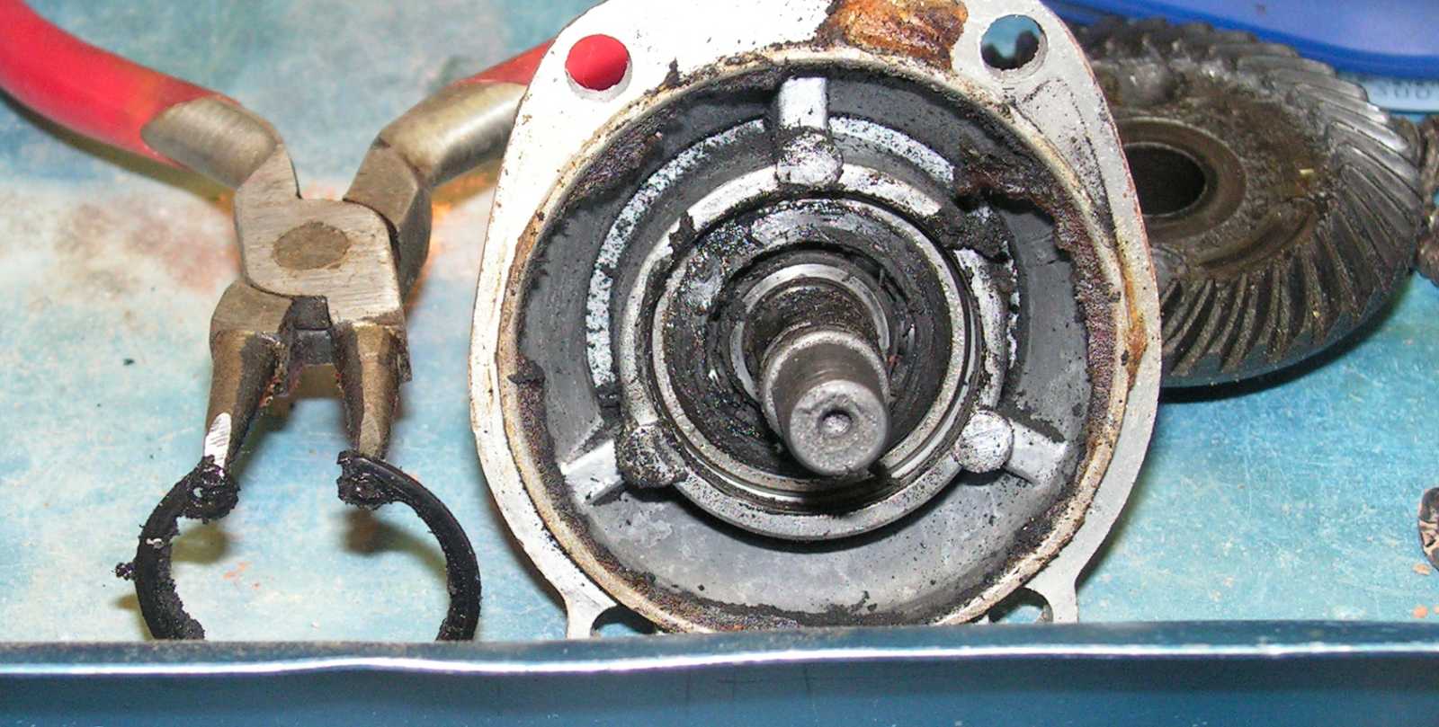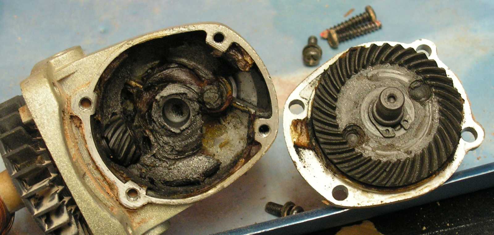 A fogaskerekek kenésére használt zsír nagyja viszont már rég kiült a hajtómű falára.