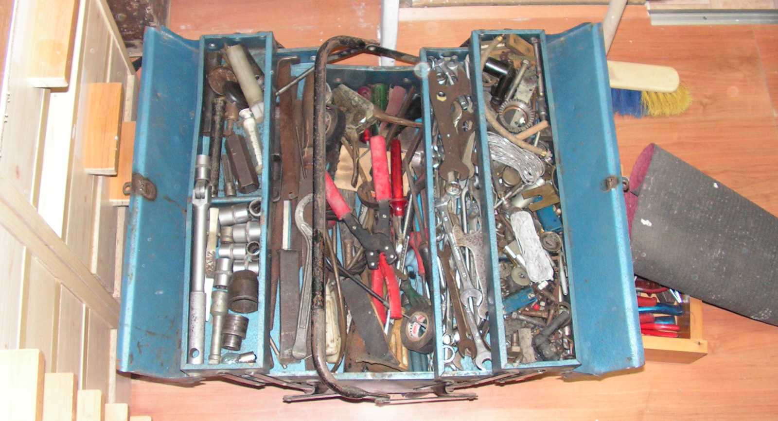 Miután a motoros szerszámos ládában sem találtam, mindjárt beugrott, hogy ami eredetileg itt volt (mármint zégergyűrűhöz való fogó), az most valahol a lakásban található szerszámos fiókban van. A cserélhető fejű zégergyűrű fogó úgyszintén. |