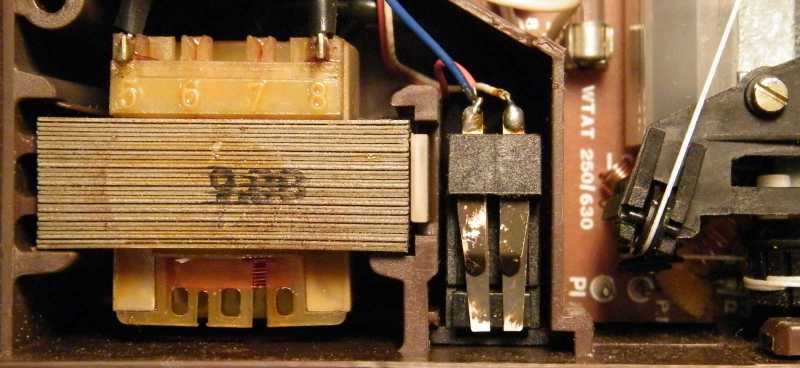 Az a fej ott középen, az nem ám csak úgy néz ki, mintha ferde lenne, mert az valóban ferde. Amúgy amint megláttam, egyből megpróbáltam kiegyenesíteni, csakhogy nem sikerült! Ez persze (mármint a sikertelenségem) valószínűleg annak volt köszönhető, hogy nem a megfelelő csavart tekertem ki. Amúgy amiket a képen barna foltokként látunk, azok a részek magából a készülékházból lettek kiképezve. |