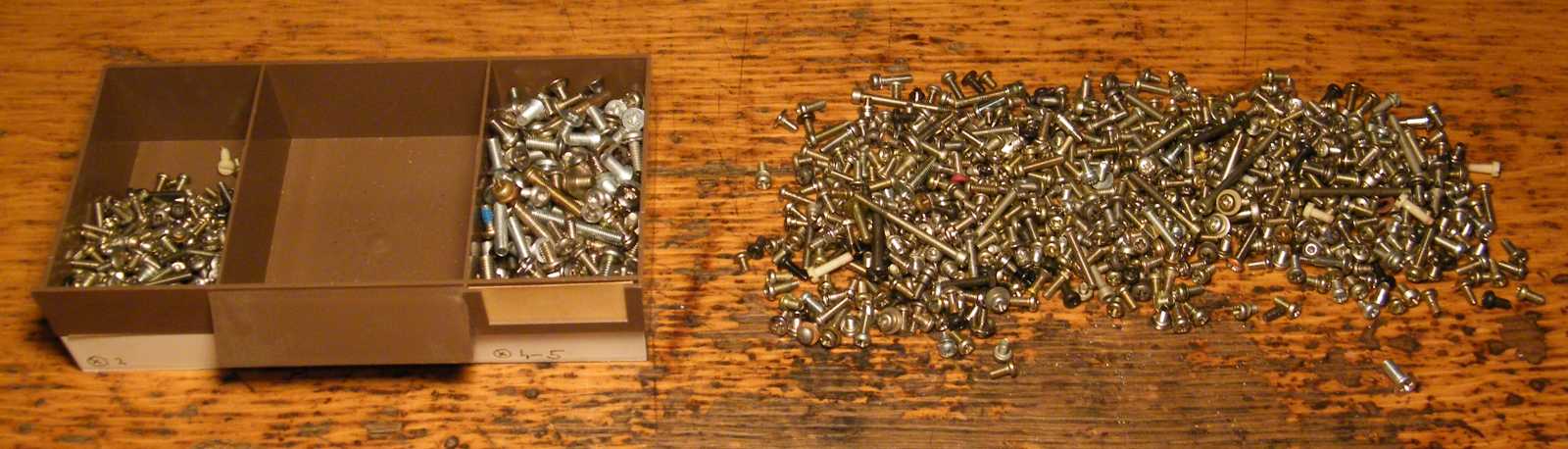 Mint ahogy mindenféle más egyéb alkatrészből is rendesen el vagyok eresztve. Ezeket amúgy nem azért borítottam ki, hogy rendet vágjak közöttük, és még csak nem is véletlenül (még csak az kellett volna...), hanem azért, hátha bontottam mostanában valami olyat, amiben sok egyforma szépfejű hármas csavar volt. |