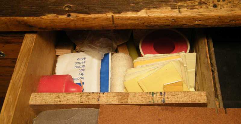 Mire fel kihúztam a középső asztalfiókot, melynek az egyik hátsó rekeszéből túrtam egy darabka kétoldalas ragacsot, amivel aztán visszaragasztottam a helyére az engedetlenkedő piezo lapocska hangszórót. |
