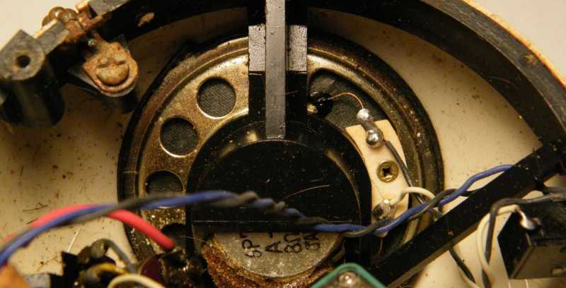 A lyukacsos rész mögött található a hangszóró.