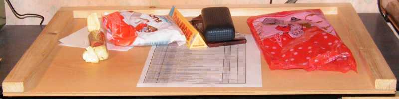 Az eltehető munkalap laminált padlóelemei olyan típusú anyagból készültek, aminek nem tükörsima a felülete. Na most az addig jó, hogy világos, szórja a fényt, szóval legalább látok rajta. No de lemosni róla a mocskot? Na az aztán a kihívás! |
