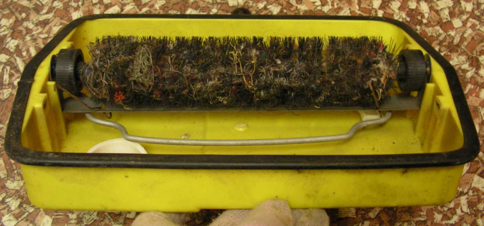 A működési elv arra alapul, hogy miközben a szőnyegen toljuk (vagy húzzuk), a hatalmas gumikerekek egy gyorsító áttételen keresztül megforgatják a középső kefét. Mindeközben a két szélső kefe nincs külön meghajtja, azokat csak úgy magától forgatja a szőnyeg, vagy akár a puszta padló. A mindenféle hulladékok egyrészt rátekerednek a szőrös hengerekre, másrészt a darabos részek a görgők mögötti tárolókba kerülnek, ahonnan aztán kiszórhatók, mondjuk értelemszerűen a szemetesvödörbe. Ez a leírás bár elsőre nagyon is jól hangzik, a gyakorlatban azonban ez a szerencsétlenség annyival múlja alul a porszívót, hogy nem sok értelme van a tologatásának, mire fel a mi példányunk speciel idővel valahol a telken végezte. Hogy mi vele a baj? Nos egyrészt az, hogy minden egyes hajszál rátekeredik a szőrös hengeres kefékre, az összeszedett apróságokat pedig idővel kiszórja magából. |
