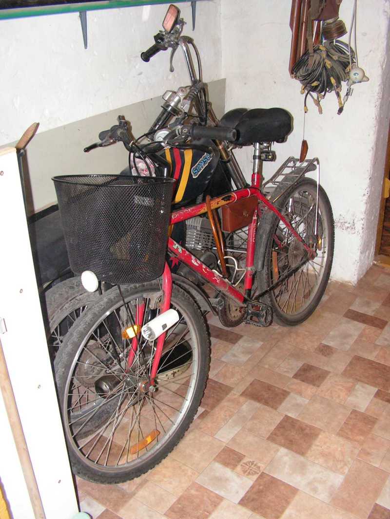 Illetve nem majd, hanem most, mire fel már hoztam is ki a pincéből a tartalék bicaj vázát, meg egy bele még véletlenül sem illeszkedő pótkereket. Ez a kerék amúgy valószínűleg az én szovjet fecske versenybiciklimé volt, ami úgy került vissza hozzám, hogy mikor kidobtam, Balázs Laci szomszédom visszahozta, majd mikor már nála sem fért el, akkor betette Mártika pincéjébe, aki Laci halála után megkért, hogy ugyan dobjam már ki azt az ócska kereket. Én meg ugye, amekkora barom vagyok, megszántam, mert emlék. Amúgy azért nincs rajta fogaskerék, mert mikor leszakadt a vázról a váltó, kínomban úgy oldottam meg a meghajtást, hogy nagy fogaskerék, két távtartó, kis fogaskerék, két távtartó, majd egy újabb nagy fogaskerék következett. Már úgy értem, hogy ha nem így csináltam, akkor folyton leesett a bicajról a lánc. Aztán persze, mikor 1980 őszén megvettem az első Verhovina mopedet, a rozzant biciklik viszonylag gyorsan ki lettek dobva. |