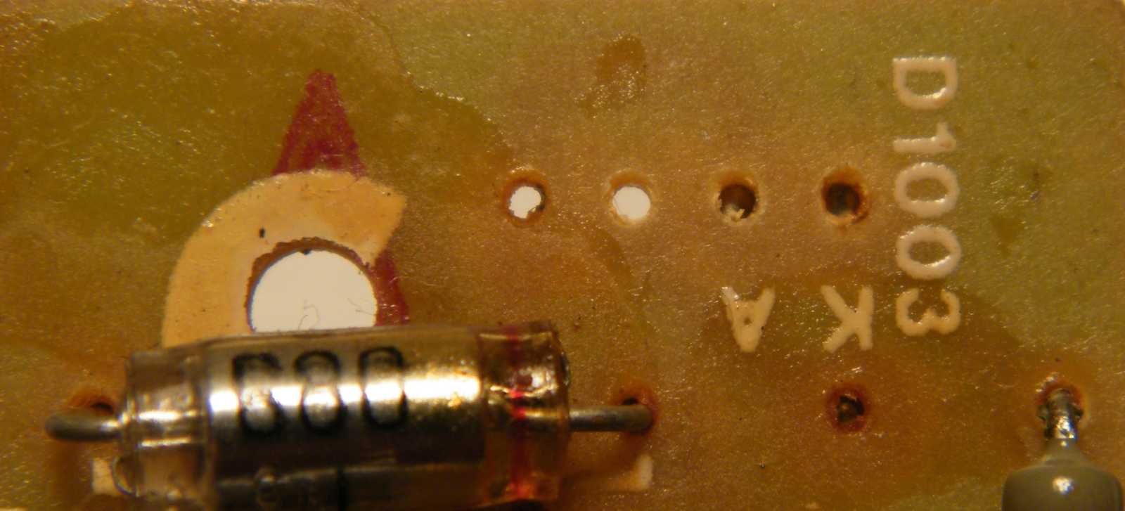 Míg balra a távirányító működési frekvenciáját meghatározó rezonátort látjuk, addig jobbra hat darab igen kövér forrasztást. Míg utóbbiakkal nem szokott baj lenni (mármint egy távirányítóban a kövér forrasztásokkal), addig a rezonátor lábának elszakadása a távirányítók egy igencsak tipikus hibája. |