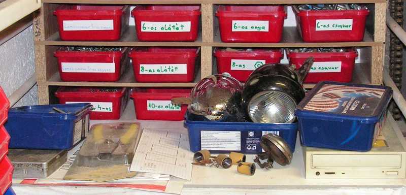 A motorszereléshez szükséges szerszámokat tartalmazó ládát azért húztam ki a helyéről (amúgy kereke van), mert kellett belőle az angolkulcs. (lásd a kép kellős közepén) Ahogy itt álltam felette, s épp nagyban azon merengtem, hogy ezt (mármint a szerszámosládát) még valamikor a kismotoros időkben milyen sűrűn kellett előhúznom, eszembe jutott róla az ezt megelőző szerszámos rejtekhely, vagyis a biciklis láda. |