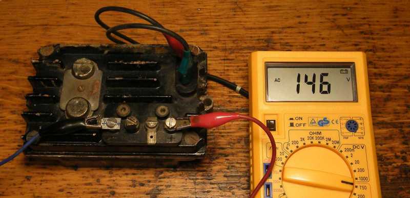 Bár kívülről, de most tulajdonképpen a tirisztoron lévő feszültséget mérem. Ez persze olyankor nem mérhető, mikor már a trafó is rá van kötve a gyújtóegységre. Mivel a belső kondenzátor erre a feszültségre töltődik fel (már ha épp van rá elég ideje), így a tirisztor ezt sütögeti rá a trafóra. Ebben a megoldásban az az okosság, hogy a kondenzátor akkor is feltöltődik, mikor az akkumulátorban már csak 3 volt feszültség van, míg a 12 voltra méretezett gyújtótrafó már nem biztos, hogy ilyen alacsony feszültségről is hajlandó szikrákat adni. |