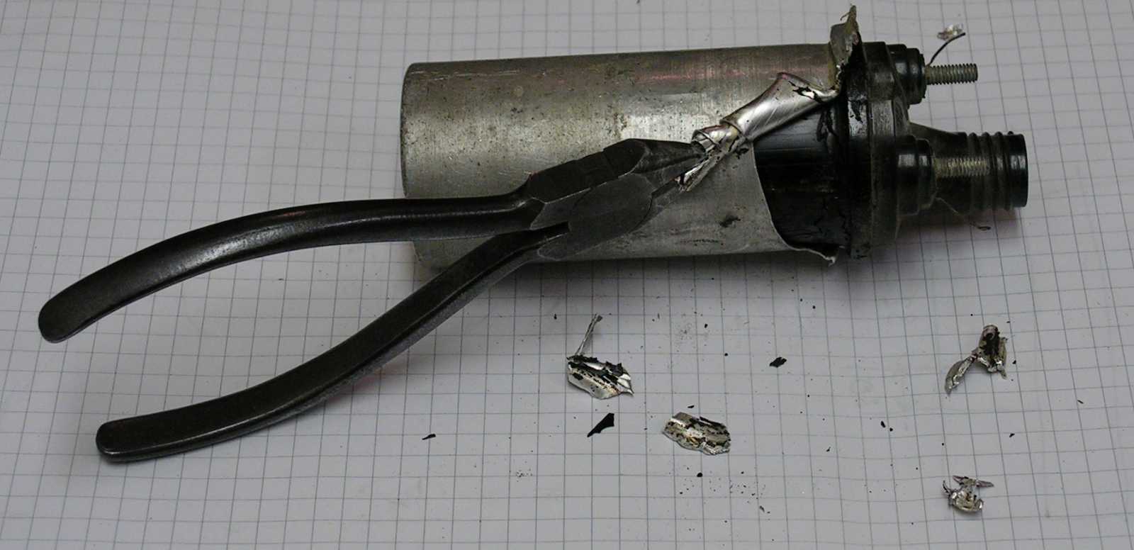 Kezdetben még úgy volt, hogy hosszában végig flexelem a meneteket, csak mikor beleszorítottam a trafó maradékát a satuba, akkor megéreztem, hogy a tekercselés nagyon laza. |