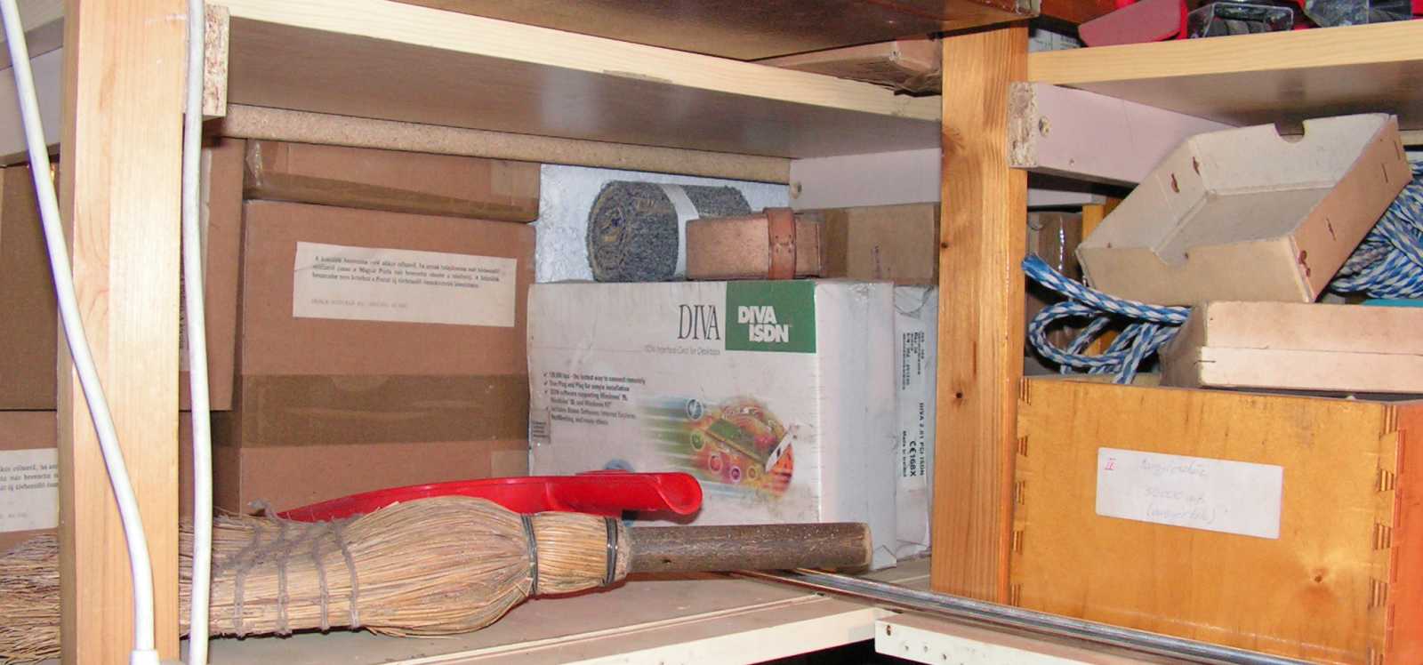 Ma még véletlenül sem azért evett ide a fene, hogy a már legalább elméletben megkezdett polccal foglalkozzak, mint inkább azért, hogy megpróbáljak valamiféle rendet vágni a lomos pincében. Miután ez nemhogy nem sikerült, de még talán egy kicsit nagyobb is lett a kupi, mint amekkora az állítólag áldásos tevékenységem megkezdése előtt volt, átfutottam ide, az átlátszó dobozba összegyűjtögetett dimmerekkel. Ha meg már itt voltam, illetve mivel odaát nem sikerült, gondoltam itt is megpróbálkozom a rendrakással. |