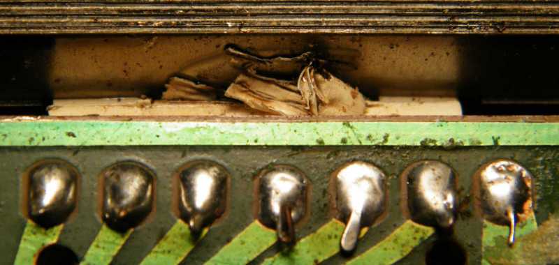 Részemről csak reménykedni merek benne, hogy az a barnaság a forrasztó ónból származó gyanta, nem pedig rozsda. A rozsda lehetőségétől a fényképezőgép annyira megilletődött, hogy a barna mocsokra rá sem mert fókuszálni! |
