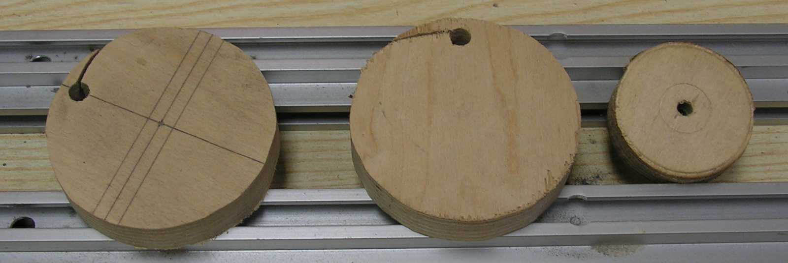 Ha már egyszer nekiálltam, gondoltam legyen meg a másik nagyfejű anya is, ami persze nem ehhez a mai projecthez kell, hanem majd valamelyik későbbihez, mikor is nagyon jól fog esni, hogy ott hever készen a dobozban. Ami szerszámot a képen látunk, az amúgy egy bútorlap alá beszerelt szúrófűrész, a másik pedig, ami rajta hever, az egy úgynevezett középpontjelölő. |