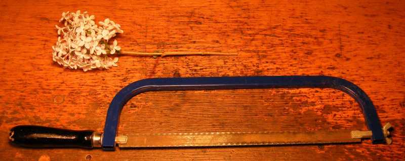 Nem, az orgonát nem a fűrésszel vágtam le, hanem egy metszőollóval. Mármint ezzel az összeállítással csak azt akartam megmutatni, hogy bár rezgett a léc, de a fűrészt mégsem felejtettem odalent. Amiket viszont igen, azokat most inkább nem állok neki felsorolni... |