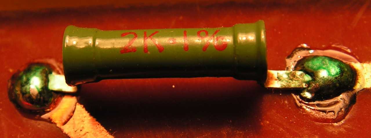 Ez egy 2 kiloohmos 1 százalékos pontosságú ellenállás. |