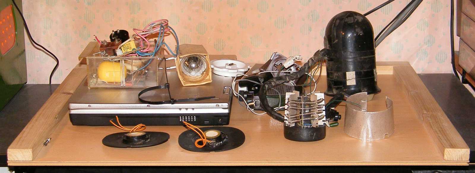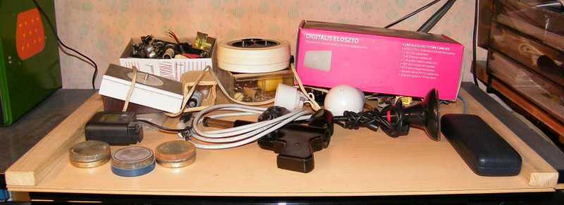 Bár a regulátoros magnómotorból biztosan akad egy elpusztítható példány valahol a pincei motoros dobozomban, és az RFT Hi-Fi kompakt is ott ücsörög valamerre az egyik pincei polcon, én mára mégis az RJ11-es telefon aljzatot választottam. Már csak azért is, mert a következő tétel frekvenciamérőben újra kellene építeni a bemeneti fokozatot, a Samsung lézernyomtató pedig túl nagy és nehéz. Mindeközben a SANYO deck már évek óta porosodik a polcon, mint ahogy a villanymotoros sárga kutyus is. |