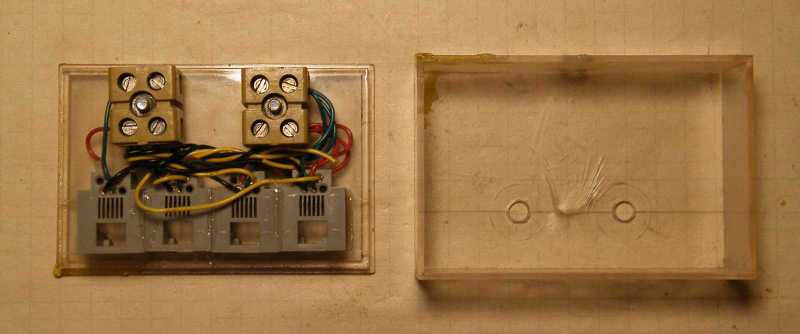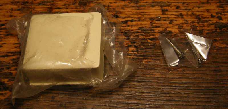 Hogy ez a konnektor sem valami profin szerelhető, az jórészt annak köszönhető, hogy ez ugye eredetileg egy ékszeres doboz, aminek (most már) az alját kell a falra felcsavarozni, majd a tetejét a konnektorokkal belepattintani. |