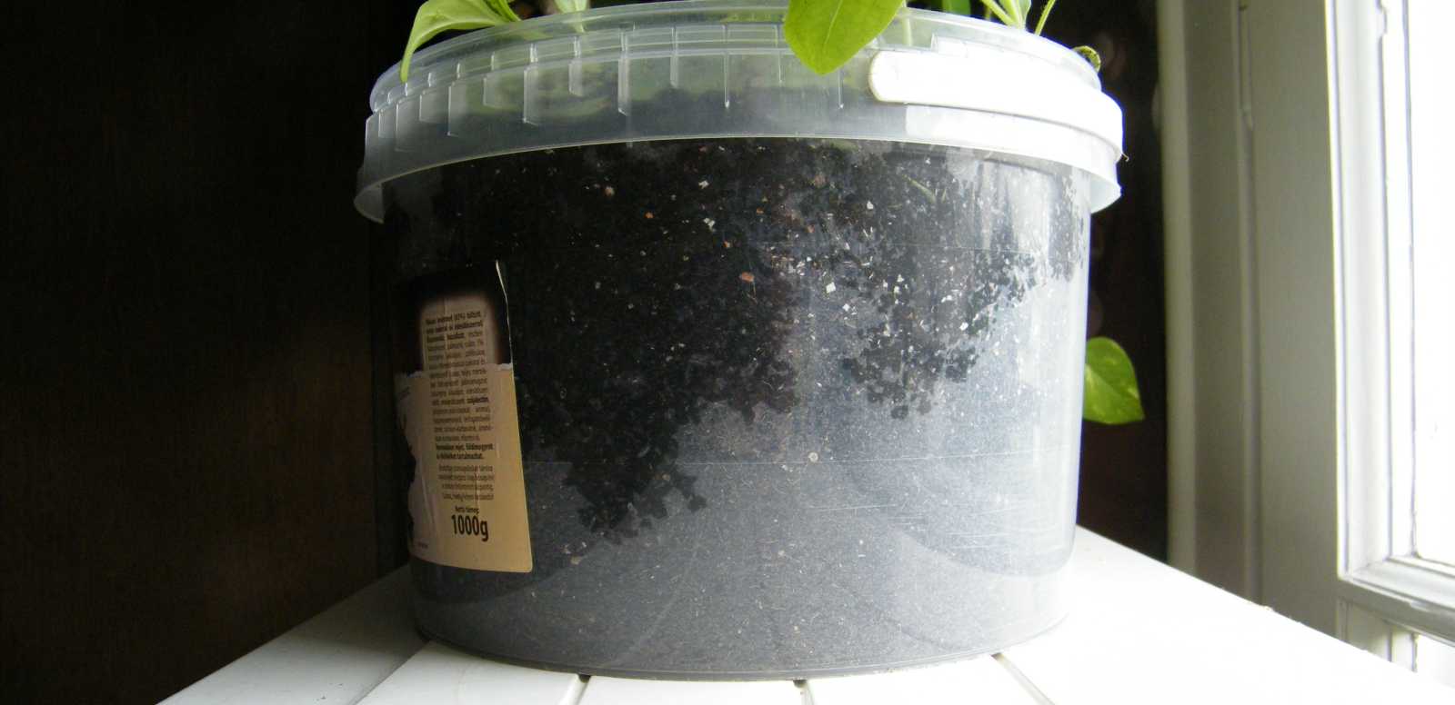 Balra azt az adag virágföldet látjuk, amit az előbb szitáltam át, s amúgy néhány perccel ezelőtt még a jobbra látható palántázó, természetesen már növényektől megfosztott társaiban voltak. Vagyis a vödörben olyan föld van, amiből ha ki azért teljesen még nem is, de azért már erősen megfogyatkozott a tápanyag. |
