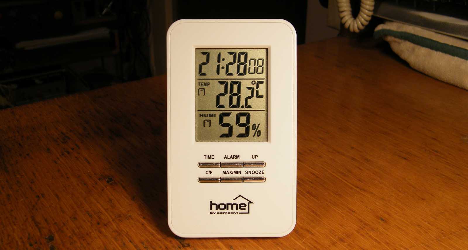 nemcsak páratartalom-mérő, de óra és hőmérő is van benne, így tudható, hogy a
