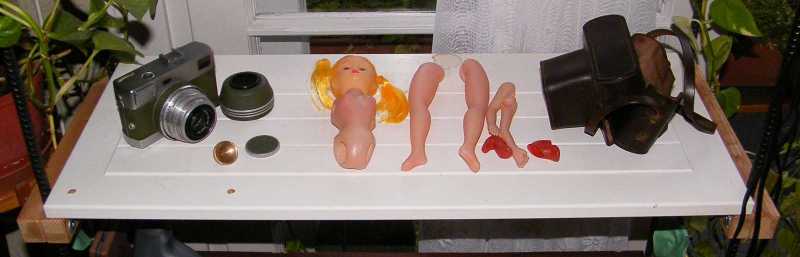Arra viszont igenis kíváncsi vagyok, hogy ezek meg mégis mikorra fognak innen eltűnni. Míg balra apukám Werra fényképezőgépét látjuk, addig a kép közepén egy utánzat Barbie baba várja a száradást. Persze nemcsak ez van, hanem a polcon is hevernek társai. Hogy mégis mit lehet szétszedni egy Barbie babán? Na ezt majd még kitalálom. Ez mondjuk már eleve széjjel van, épp mint ahogy egy kicsit én is. |