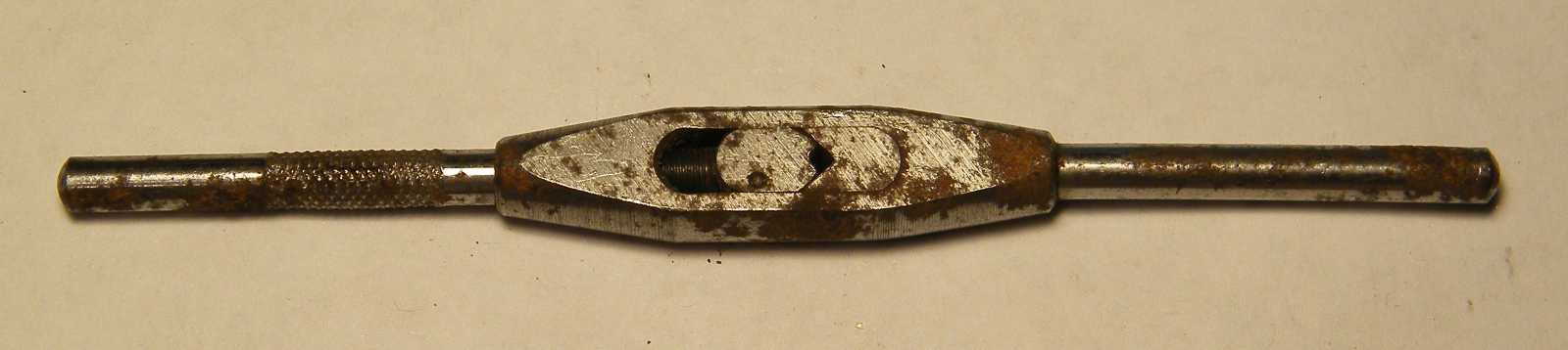 Ezt a menetfúrókhoz való hajtókart a pincei szerszámos fiókba vettem, mert már nagyon untam, hogy mikor szükségem támad rá, olyankor mindig elő kell vennem az egész menetelő készletet, illetve az apró menetfúrókhoz valahogy kényelmetlen a szokásos méretű hajtókart használni. |