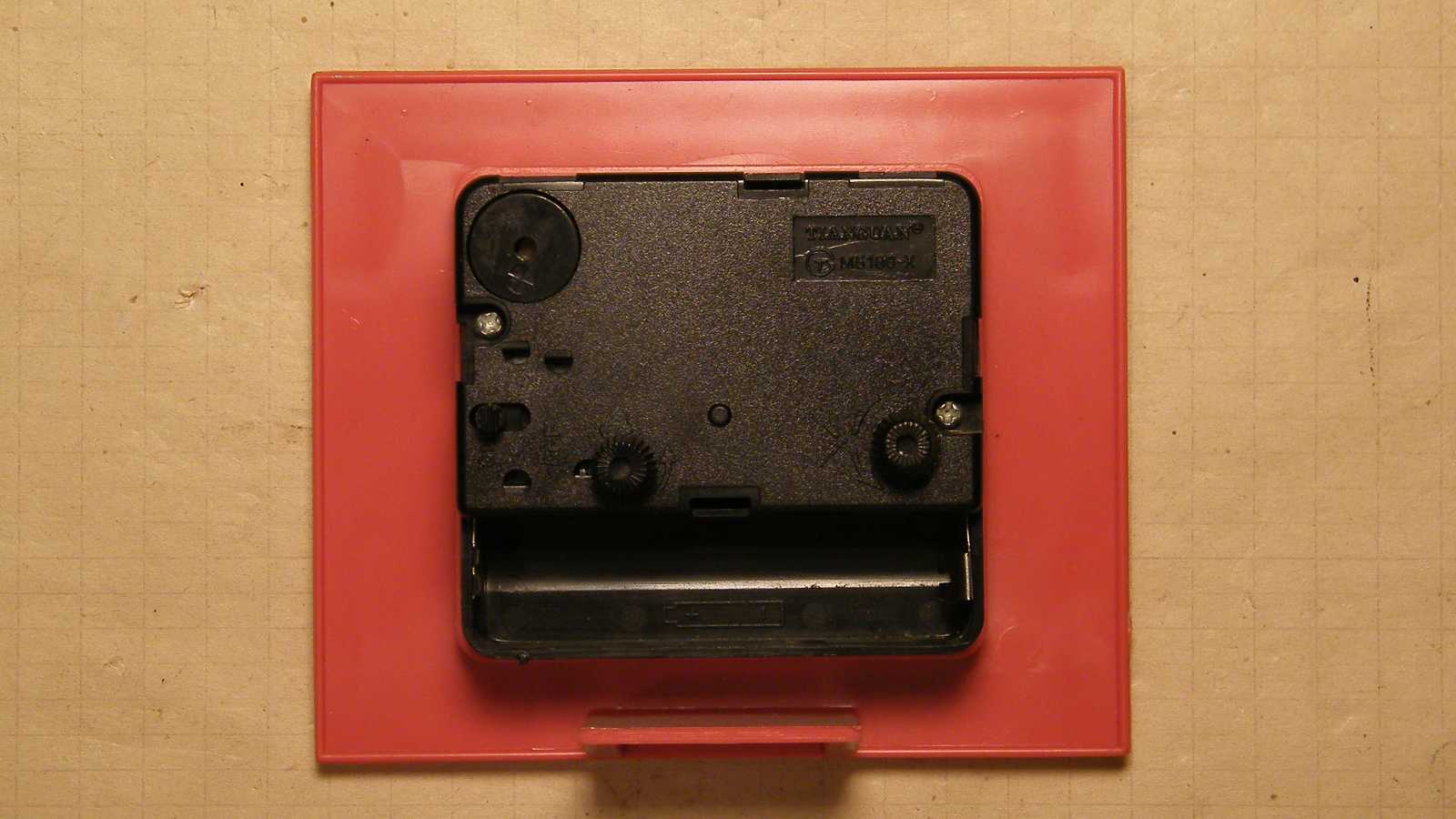 Az óra minőségéről annyit, hogy a képen látható, pirossal bekeretezett fröccsöntési maradvány itt belül vagy beakad az ébresztést ki-be kapcsoló karba, vagy nem. Bár nem áll szándékomban a jelen óra undok csipogó hangjára ébredni, de attól még levágtam a helyéről a csúf sorját. |