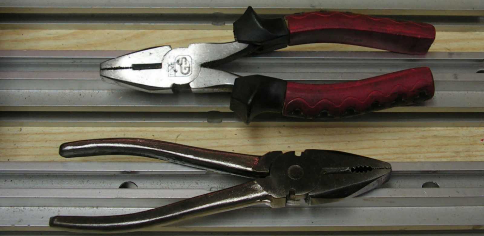 Bár a nyitóképen (tulajdonképpen meglepő módon) a cikk témája látható, ez azonban még véletlenül sincs így! Mármint ezt a három kombinált fogót azóta vettem a piacon, mióta elhatároztam, hogy felújítom az asztal fiókjában megbúvó, rozsdás és festékes példányt. Mondjuk szó se róla, ezek hárman is rászorulnak némi igazításra, de attól még igazán lehozhattam volna magammal a pincébe azt a fogót is, amiről a mai cikk tulajdonképpen szólni szeretett volna. |