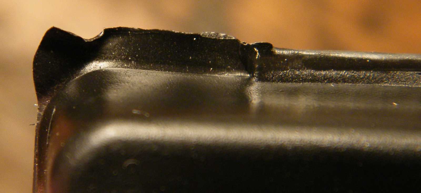 Ez az ócska kombinált fogó nyele, ami valószínűleg attól lett ilyen (mármint horpadt, pláne több helyen is), mert gyakorlatként ipari tanulók kovácsolták, akik ütötték ahol érték. Boltba meg azon elvet követve kerülhetett, hogy úgysem látszik a hiba a nyél alatt. |