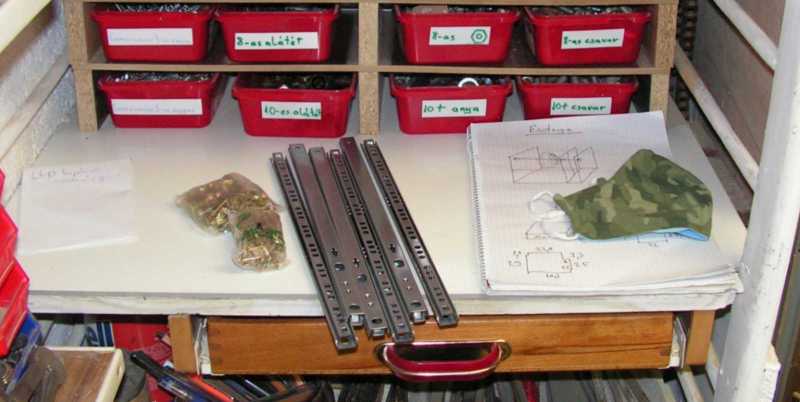 Ezek itt az előbb már említett, a polcba épülő fiókoshoz vásárolt mindenféle csavarok és fióksínek. Bár rezgett a léc, hogy itt maradnak, de végül nekiálltam őket beszerelni a helyükre, ami első nekifutásra sajnos durván félresikerült. |